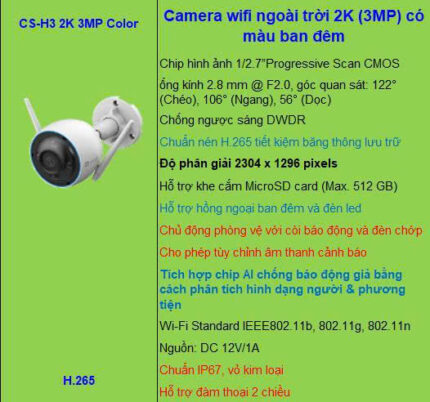 Camera WiFi thông minh ngoài trời EZVIZ CS-H3 2K (3MP)