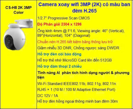 Camera Xoay wifi 3MP EZVIZ CS-H8 2K 3MP